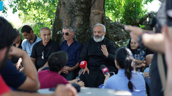 Лидер протестного движения «Тавуш во имя Родины», архиепископ Баграт Галстанян прибыл в село Киранц Тавушской области Армении для встречи с местными жителями.